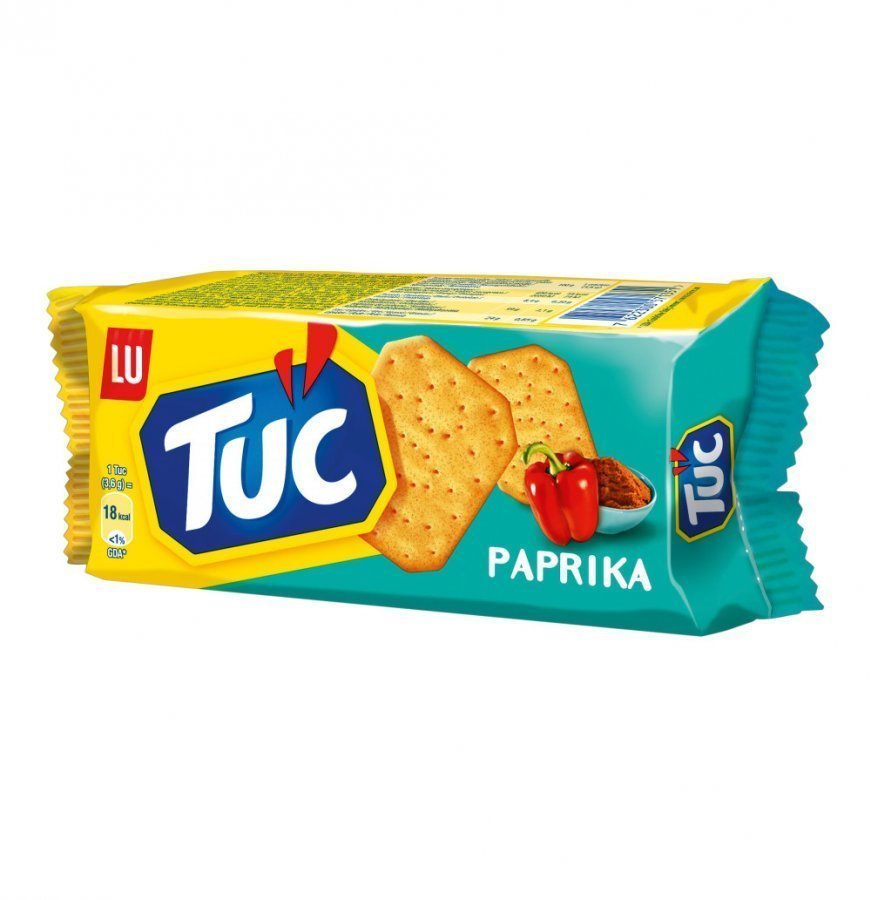 Pikkusuolaiseen nälkään herkullinen LU Tuc Suolakeksi Paprika. Paprikan makuisen suolakeksin pakkauskoko 100 g. Ainesosat: vehnäjauho, palmurasva, glukoosisiirappi, ohramallasuute, nostatusaineet (ammoniumvetykarbonaatti, natriumvetykarbonaatti),kananmuna, suola, mausteet (paprikajauhe 0,7%, pippuri), arominvahvenne (mononatriumglutamaatti), sipuli- ja valkosipulijauhe, aromit,jauhonparanne (Natriumsulfiitti), hiivauute, kasviproteiinihydrolysaatit, savuaromi, emulgointiaine (auringonkukkalesi. . .